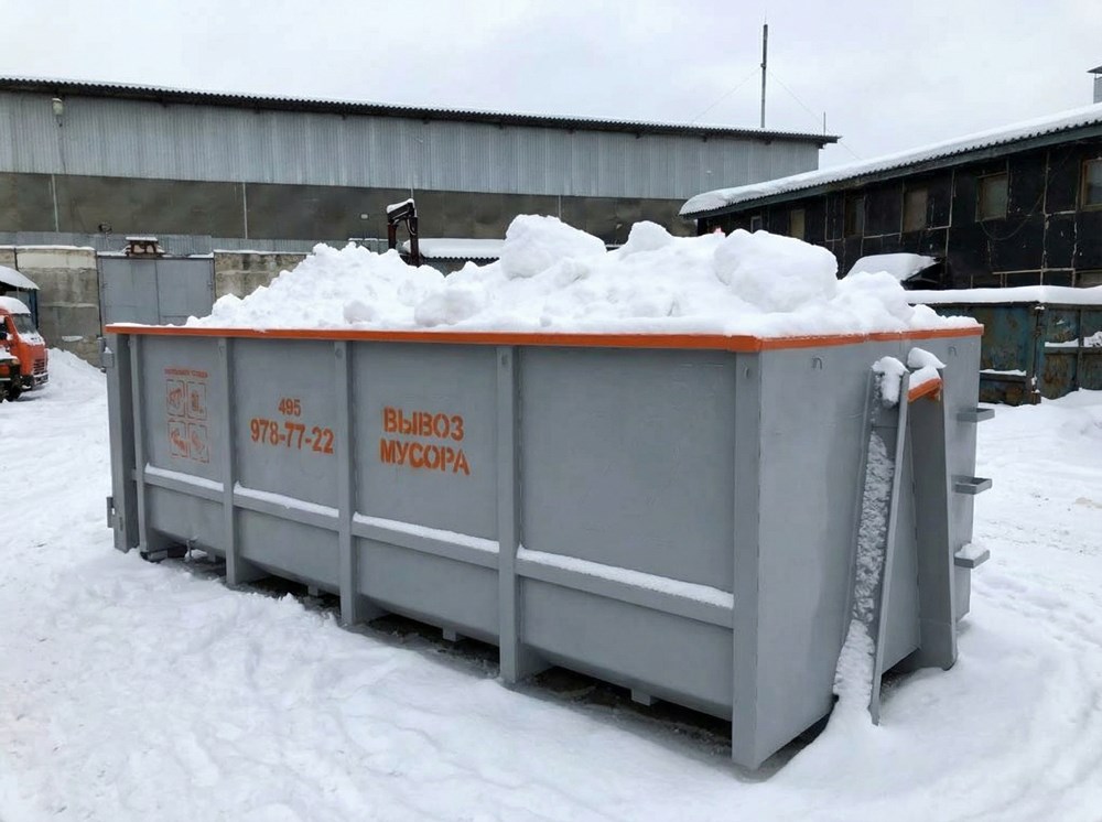Помимо вывоза снега самосвалами, в компании можно заказать аренду контейнера 8-27 м3 для сбора снежных масс, услуги по погрузке снега и уборке территории. Доступны два формата: